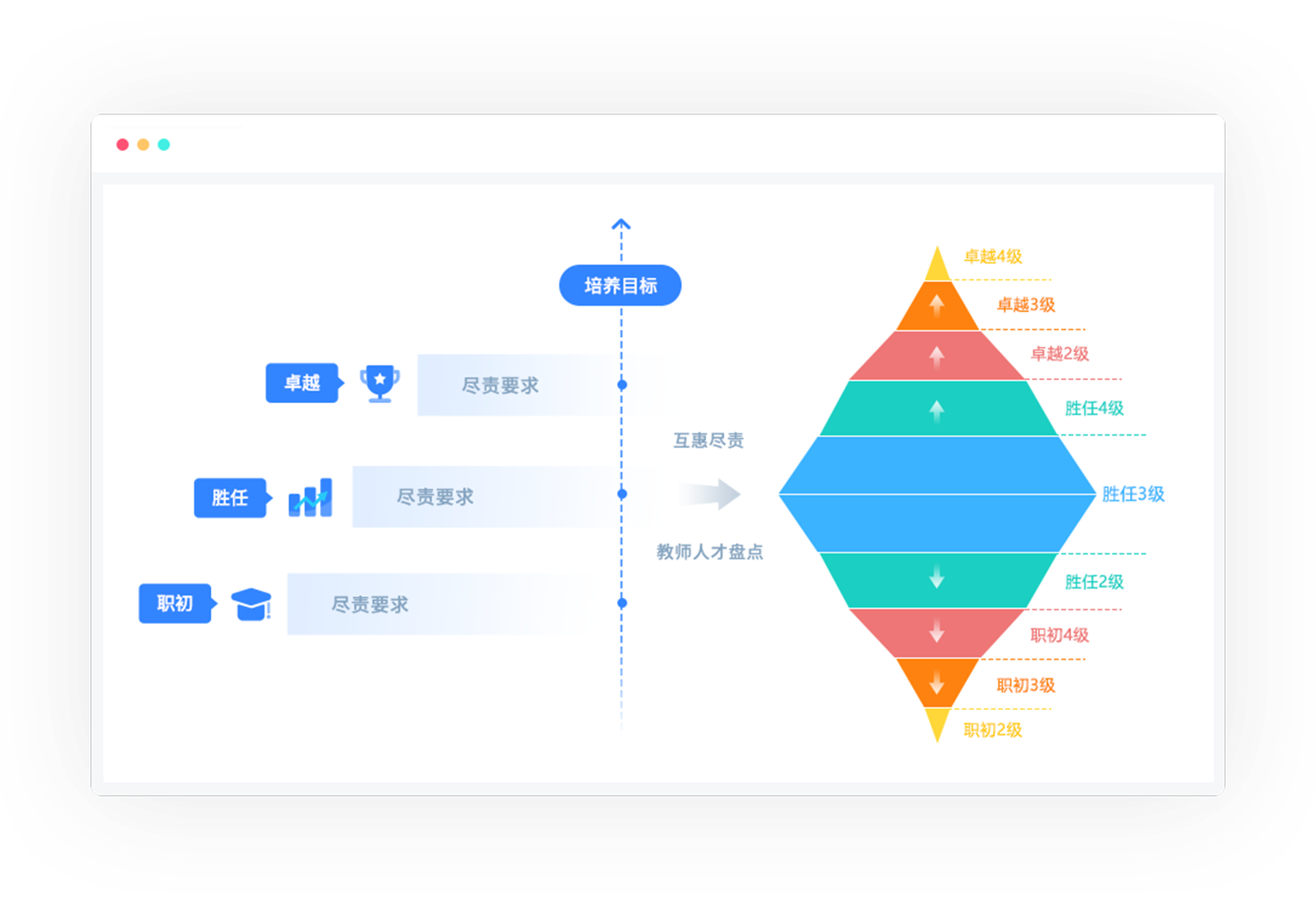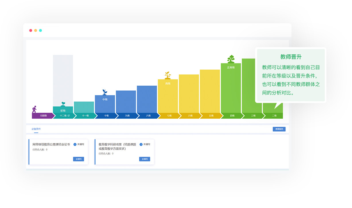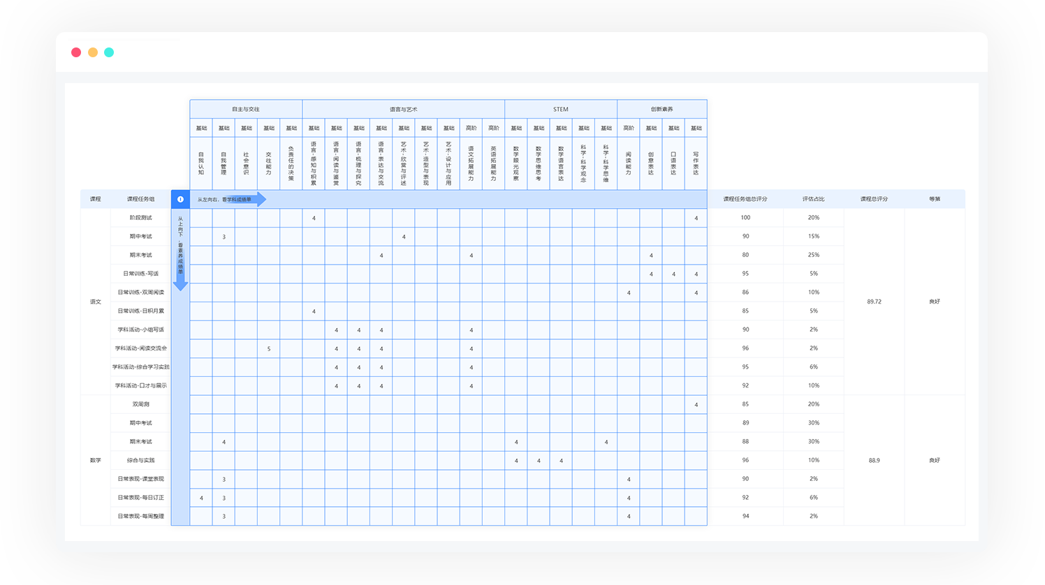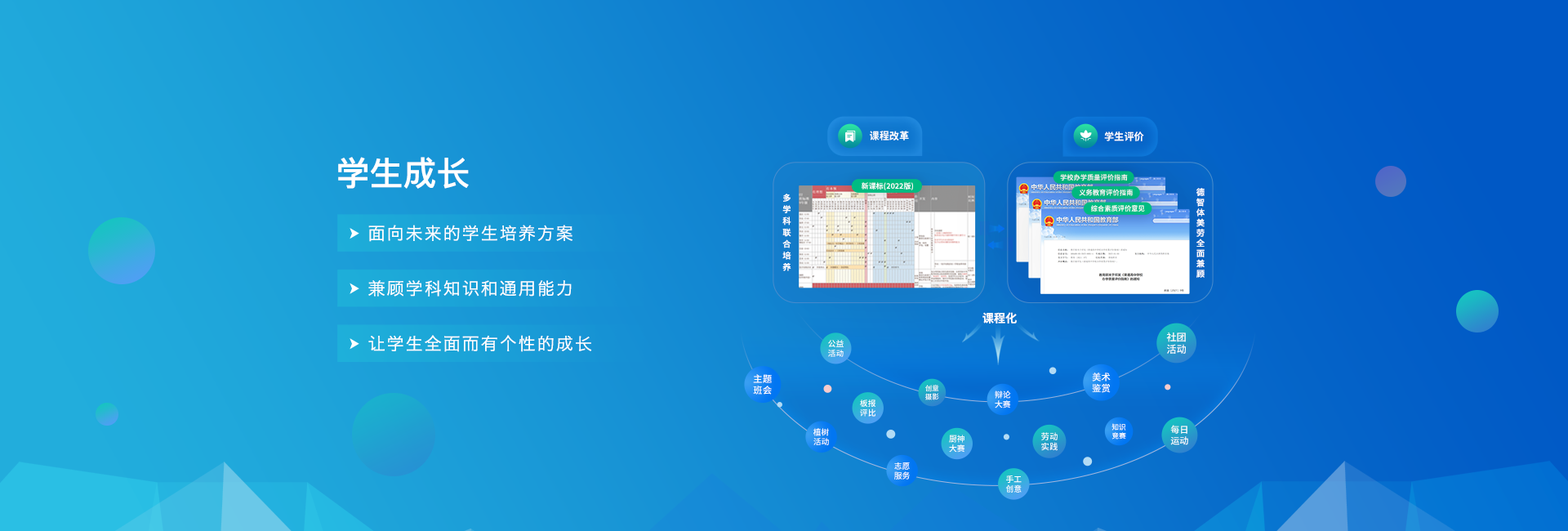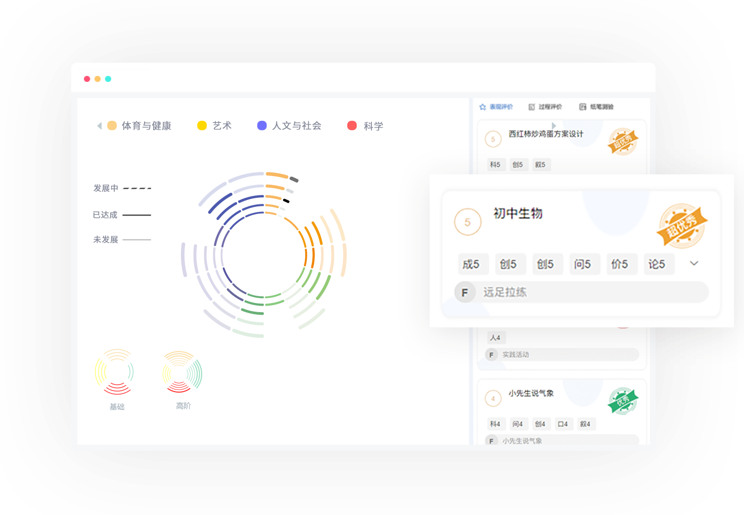 围绕学校整体育人目标,自上而下进行学生成长的顶层设计,以灵活的低代码平台和强大的大数据分析系统为支撑,以兼顾学生对学科知识的掌握以及通用能力培养的方式,为学校构建可落地执行的学生成长体系。