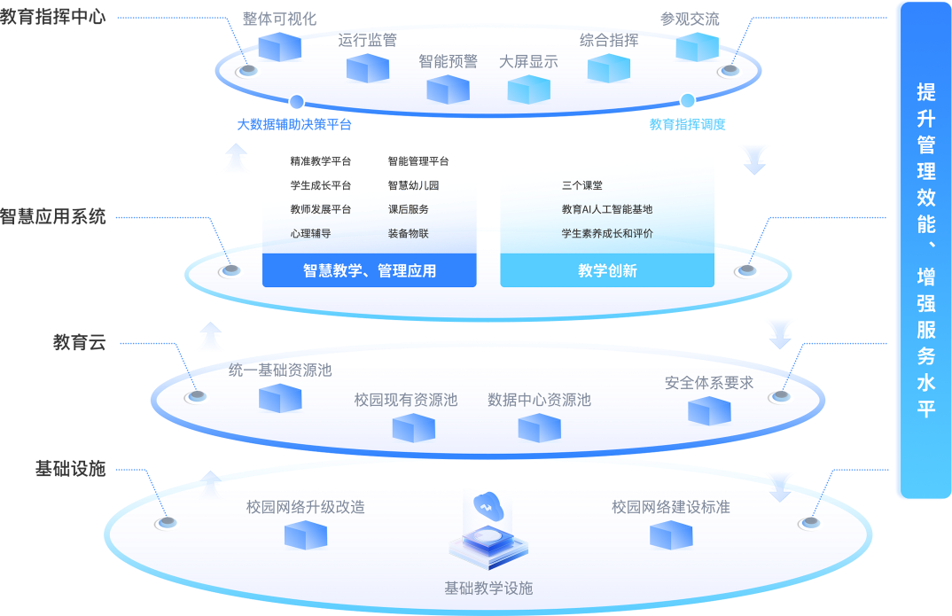 基于现代物联网技术,依托智慧管理软件平台和智能硬件,打造线上、线下一体化智慧校园服务,全面解决学校在办公、后勤管理等方面的管理需求,有效降低学校管理成本,提升学校管理效率,实现学校管理自动化、高效化与智能化。